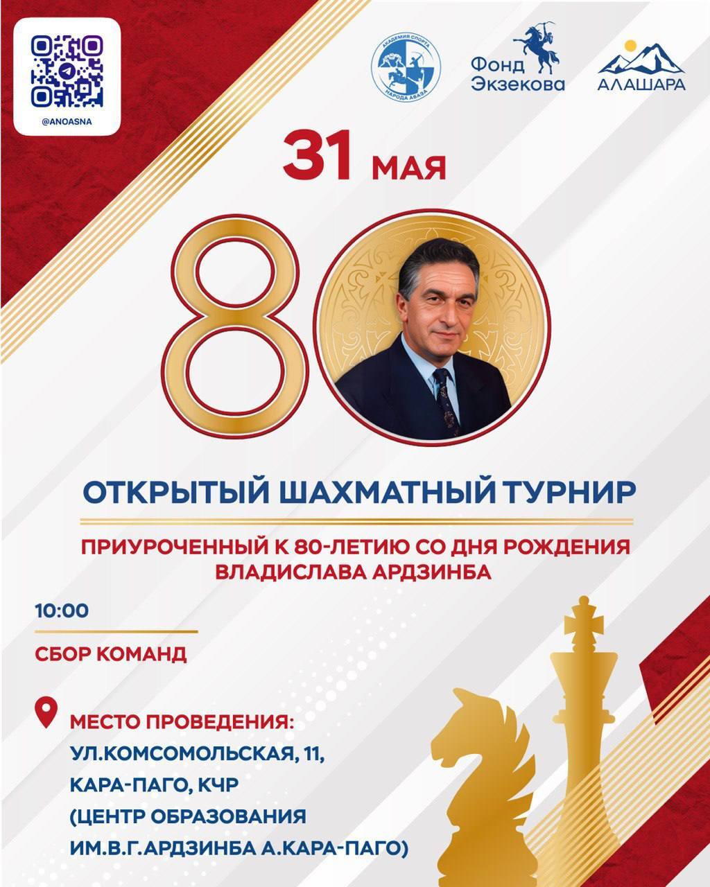 Черкесск, 22 мая. 31 мая в ауле Кара-Паго пройдет открытый шахматный турнир, приуроченный к 80-летию со дня рождения Владислава Ардзинба, первого президента Республики Абхазия. Мероприятие организовано Академией спорта народа «Абаза» в сотрудничестве с АНО «Алашара».